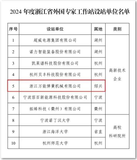 2024年,浙江萬能彈簧機械有限公司榮幸地成為紹興市唯一入選的企業(yè),再次為紹興市爭得榮譽。這個成就不僅是對公司技術創(chuàng)新和國際化發(fā)展戰(zhàn)略的肯定,也標志著公司在全球競爭力方面邁出了新的步伐。